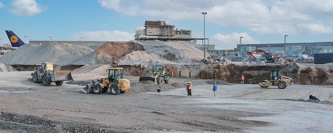 Beim Neubau des Rollwegs Lima 7 des Flughafens Düsseldorf hat B + R Düsseldorf-Neuss die Entsorgung von ca. 50.000 Tonnen belastetem Bodenaushub verantwortet. Das Material wurde in eine bodenbiologische Aufbereitungsanlage verbracht und dort behandelt. Zusätzlich haben wir in unseren Betriebsstätten im Düsseldorfer Hafen und in Wülfrath ca. 15.000 Tonnen Betonaufbruch angenommen und zu Recyclingbaustoffen aufbereitet. Für das Bauvorhaben wurden von uns rund 100.000 Tonnen Hartkalkstein und Kies angeliefert.